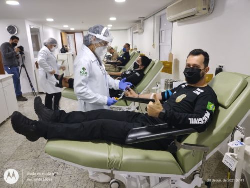Encerrando a campanha Junho Vermelho, mês de conscientização para a doação de sangue, e tendo em vista uma possível suspensão das suas cirurgias eletivas, o Hospital de Câncer Araújo Jorge (HAJ) organiza, nesta quarta-feira (30), uma doação de sangue coletiva. Estendendo o braço, e abrindo o coração por quem luta contra a doença, representantes de órgãos de Segurança Pública e Trânsito, como Polícia Rodoviária Federal (PRF), Polícia Civil (PC) e Departamento Estadual de Trânsito (Detran). Agentes, escrivães, delegados e papiloscopistas da Polícia Civil de Goiás estiveram no hospital e fizeram sua doação para auxiliar na campanha.