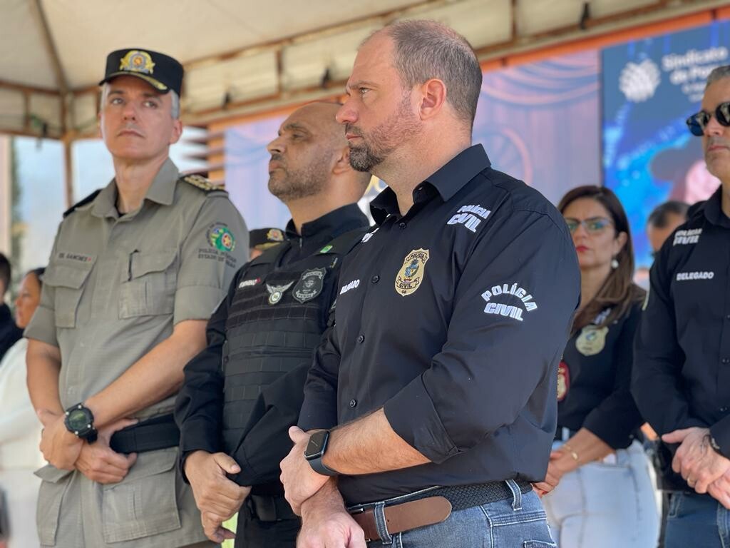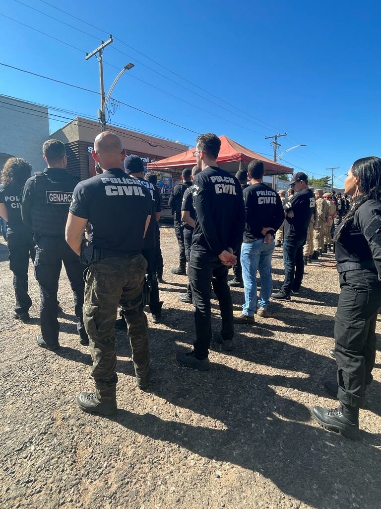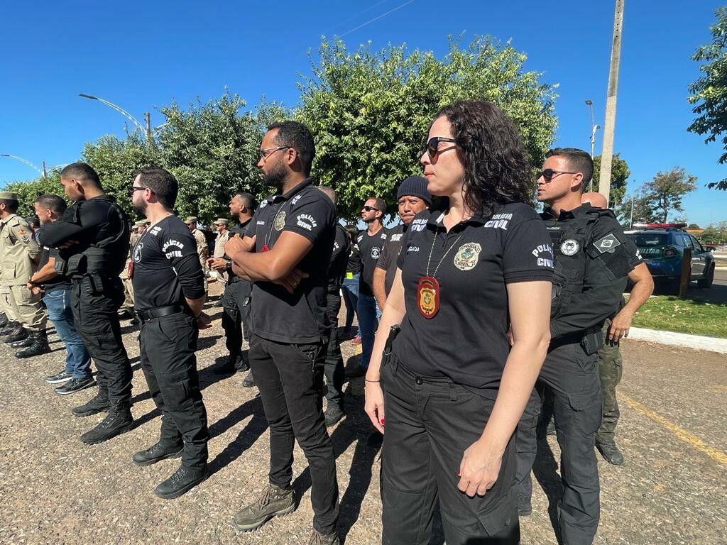 A Polícia Civil de Goiás participa hoje (7) da Operação Mãos Dadas, lançada na cidade de Porangatu, pela Secretaria de Segurança Pública de Goiás (SSP), por meio da Superintendência de Ações e Operações Integrada. Assim como já feito em Luziânia, Catalão, Rio Verde, São Luís de Montes Belos, Anápolis e Formosa, o foco é reforçar o policiamento ordinário e coibir crimes, visando à manutenção da paz e da ordem. Participaram da operação o delegado-geral da PCGO, André Ganga, o gerente de planejamento operacional (GPO), Rodrigo Mendes, a gerente de de Apoio às Delegacias Regionais e do Entorno, Cybelle Silva Tristão, o delegado regional de Porangatu, Stanislao Mont’Serrat, além do subsecretário de Segurança Pública Deusny Silva Filho e outras autoridades das forças de segurança.