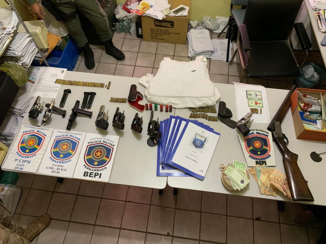 Os referidos mandados de busca e apreensão e um dos mandados de prisão foram cumpridos, na última quinta-feira (07), pela Polícia Civil pernambucana (24ª Delegacia Seccional), com apoio da PM e Ministério Público. Foram apreendidas várias armas de fogo (09 armas de diversos calibre) inúmeras munições, grande quantidade em dinheiro e demais objetos.