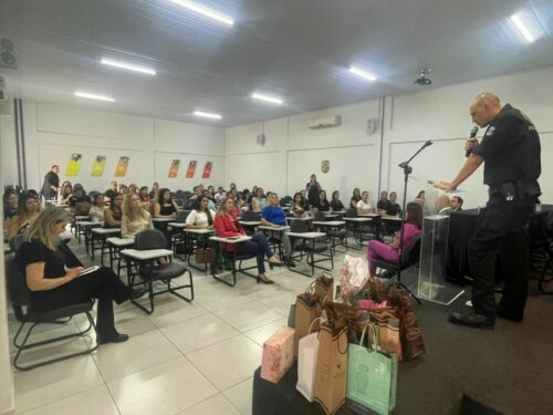 A Polícia Civil de Goiás realizou, na tarde desta quarta-feira (08/3), uma homenagem às mulheres em seu dia, 8 de março, em que se celebra o Dia Internacional da Mulher. A homenagem ocorreu na Escola Superior da Polícia Civil (ESPC) e contou com a participação do delegado-geral, André Ganga; delegado-geral adjunto, Murilo Polati Rechinelli; o superintendente de Polícia Judiciária, Marcelo Aires Medeiros, e a diretora da ESPC, Tatyane Gonçalves Cruvinel. A cúpula da PCGO enfatizou, em discurso, a importância e o papel de destaque das mulheres na instituição, cujo trabalho traz eficiência e proatividade às investigações criminais. Houve sorteio de brindes e também um café especial para as policiais civis e demais servidoras da instituição.