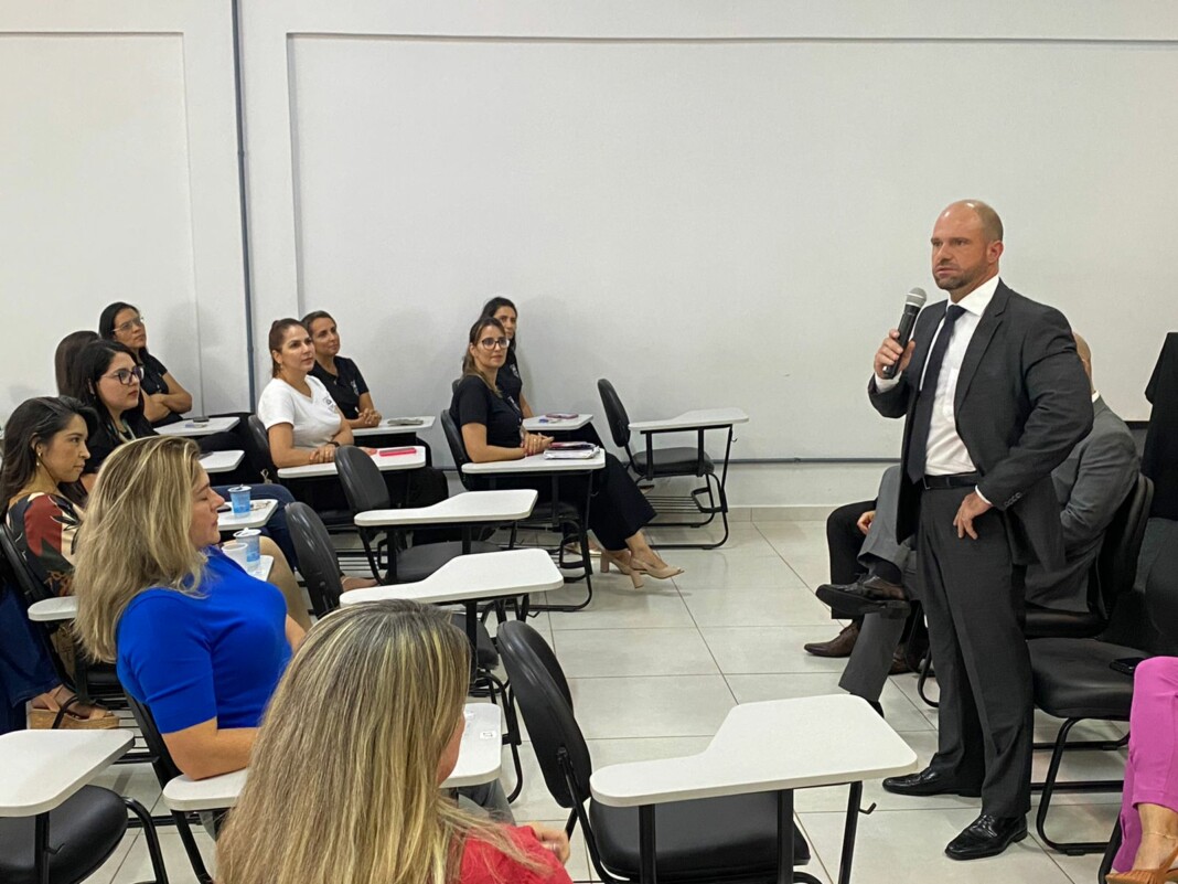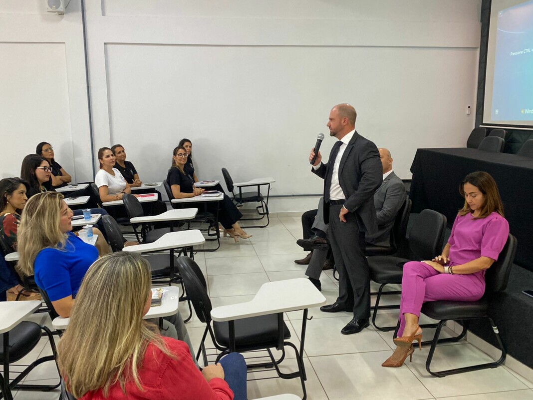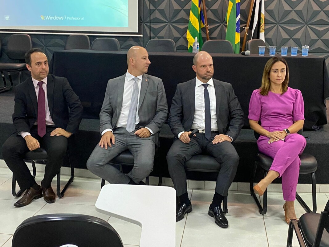 A Polícia Civil de Goiás realizou, na tarde desta quarta-feira (08/3), uma homenagem às mulheres em seu dia, 8 de março, em que se celebra o Dia Internacional da Mulher. A homenagem ocorreu na Escola Superior da Polícia Civil (ESPC) e contou com a participação do delegado-geral, André Ganga; delegado-geral adjunto, Murilo Polati Rechinelli; o superintendente de Polícia Judiciária, Marcelo Aires Medeiros, e a diretora da ESPC, Tatyane Gonçalves Cruvinel. A cúpula da PCGO enfatizou, em discurso, a importância e o papel de destaque das mulheres na instituição, cujo trabalho traz eficiência e proatividade às investigações criminais. Houve sorteio de brindes e também um café especial para as policiais civis e demais servidoras da instituição.