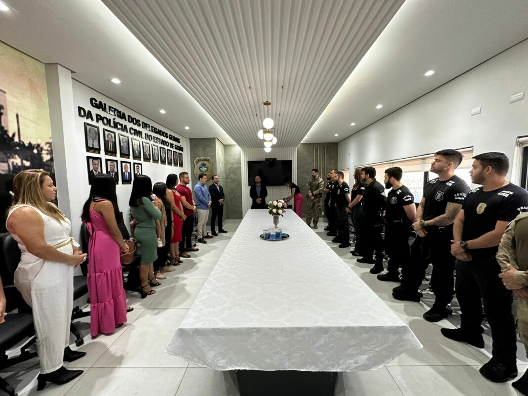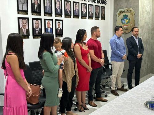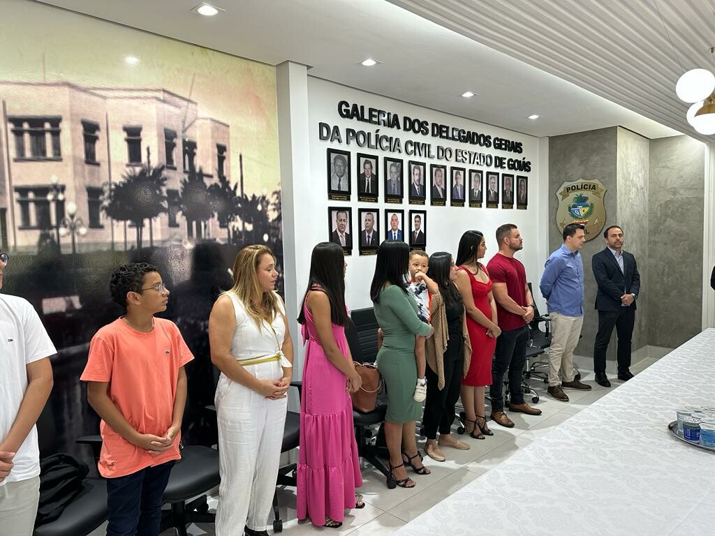 A Delegacia-Geral de Polícia Civil prestou, na manhã de hoje (28), homenagem aos familiares dos policiais civis Willian Oliveira Sousa e Washington Oliveira Sousa. Estiveram presentes as esposas e filhos dos policiais, o delegado-geral André Ganga e todos os membros da cúpula da instituição. Os policiais civis eram irmãos, agentes da PCGO, e morreram, em 2012, em uma região de chácaras do município de Aragoiânia. O caso foi investigado pela Delegacia de Homicídios na época, o que resultou na condenação do autor do crime. Após cumprir pena, o autor cometeu novos delitos, foragiu e foi localizado pela PCGO, no Rio de Janeiro, em junho deste ano, durante operação da Deic, quando acabou morto após atentar contra os policiais que iriam efetuar sua prisão em flagrante. Os familiares receberam placas com o nome dos policiais civis em homenagem.