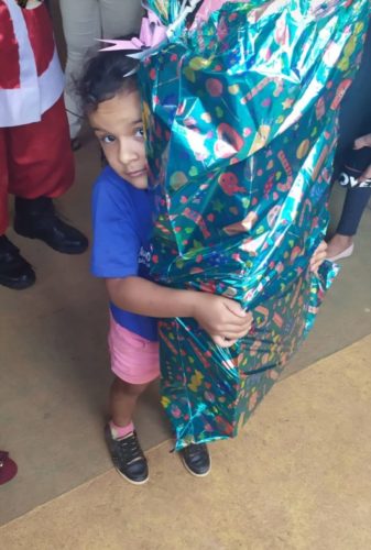 A entrega dos presentes pela equipe de policiais civis foi feita na última quinta-feira (12). Foram realizadas brincadeiras com as crianças e fizeram a comemoração dos aniversariantes do semestre.