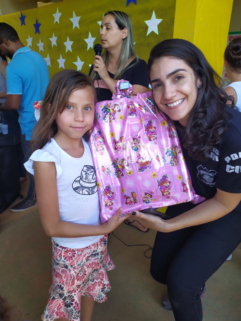 A entrega dos presentes pela equipe de policiais civis foi feita na última quinta-feira (12). Foram realizadas brincadeiras com as crianças e fizeram a comemoração dos aniversariantes do semestre.