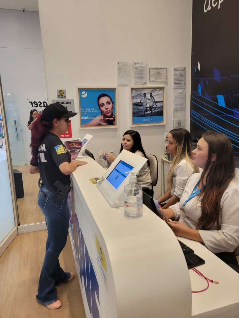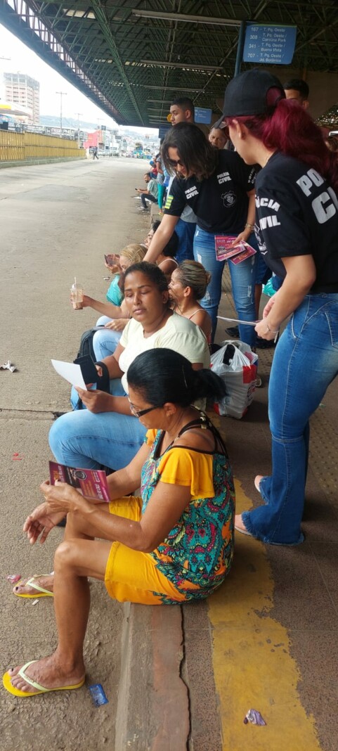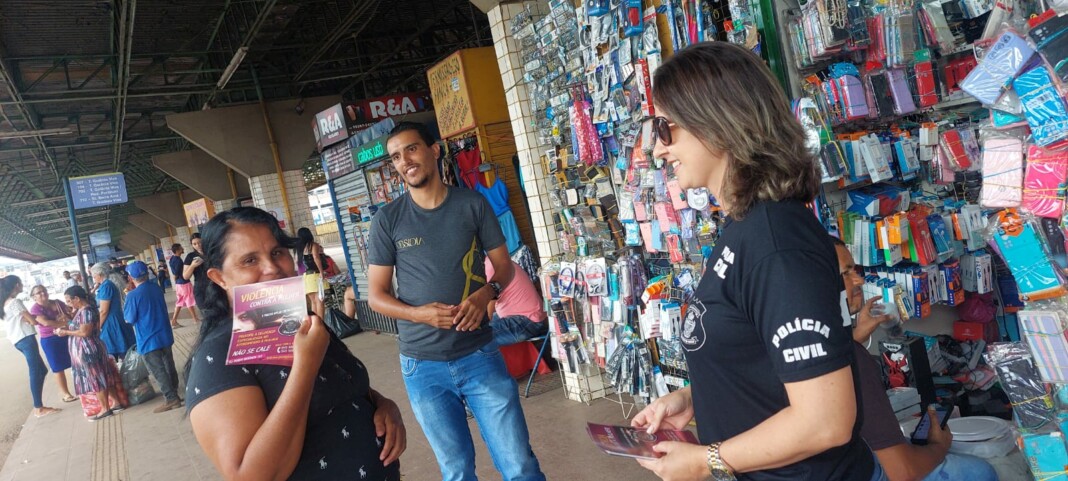 A Polícia Civil, por intermédio da 1ª Delegacia Especializada no Atendimento à Mulher (Deam) de Goiânia, promoveu a conscientização das mulheres do Setor Aeroviário acerca de seus direitos e sobre a necessidade de levar às autoridades públicas todos os casos de Violência Doméstica. A ação ocorreu nessa quinta-feira (02/3), em que policiais civis realizaram a distribuição de panfletos no Terminal do Dergo e no Shopping Cerrado. A desinformação é uma das maiores causas de subnotificação dos casos de violência doméstica e combatê-la é uma ação necessária à segurança das mulheres. Esta ação faz parte da Operação Átria, que visa intensificar ações no combate à violência contra a mulher neste mês e é coordenada nacionalmente pelo Ministério da Justiça.