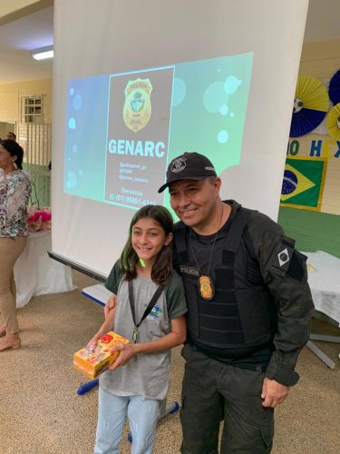 Ação social: Polícia Civil entrega medalhas e sorteia prêmios a alunos-destaque de escola em Valparaíso