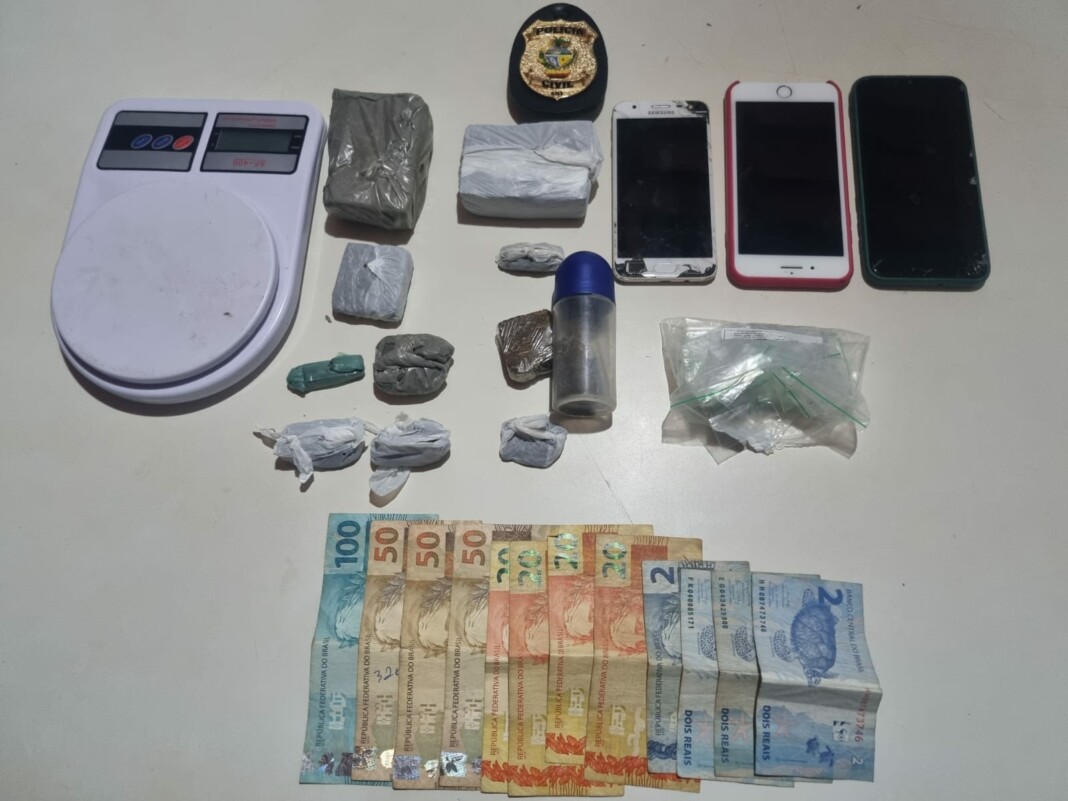 Ao todo, foram apreendidos 324 gramas de maconha, três celulares, balança de precisão, sacos tipo zip lock, R$ 338 em especie e uma motocicleta.