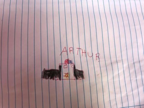O menino teve a oportunidade de mostrar alguns de seus vários desenhos de viaturas e policiais. Felizes pela forma com que foram representados nos desenhos, os policiais civis presentearam Arthur Felipe com um kit de materiais escolares. Acompanhado dos pais, Arthur ainda pôde conhecer uma viatura da Polícia Civil.