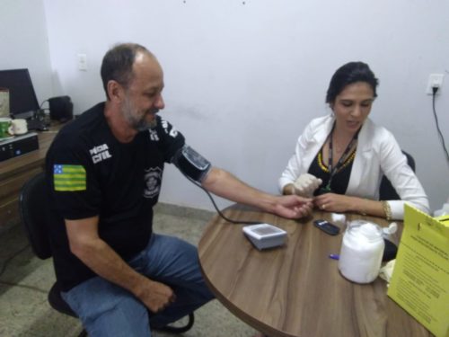 Uma das preocupações, segundo o Delegado-Geral, é cuidar da saúde dos policiais. Por isso, levou a Anápolis uma equipe da Divisão de Proteção à Saúde do Servidor, que fez atendimentos como aferição da pressão arterial, medição da glicemia e aplicação da profilaxia para amenizar os sintomas da dengue.