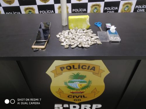 A Polícia Civil do Estado de Goiás, por meio do Grupo de Repressão a Narcóticos (Genarc) de Luziânia, em cumprimento a mandado de busca e apreensão nessa quarta-feira (09), durante a Operação Narco Brasil, do Ministério da Justiça, prendeu em flagrante de delito dois indivíduos por tráfico de drogas. No local, diversas pessoas foram abordadas e, durante a busca domiciliar, foram encontrados um tablete de maconha, 88 porções prontas para a venda e balança de precisão. Os autuados encontram-se recolhidos na Unidade Prisional de Luziânia e permanecerão à disposição do Poder Judiciário.