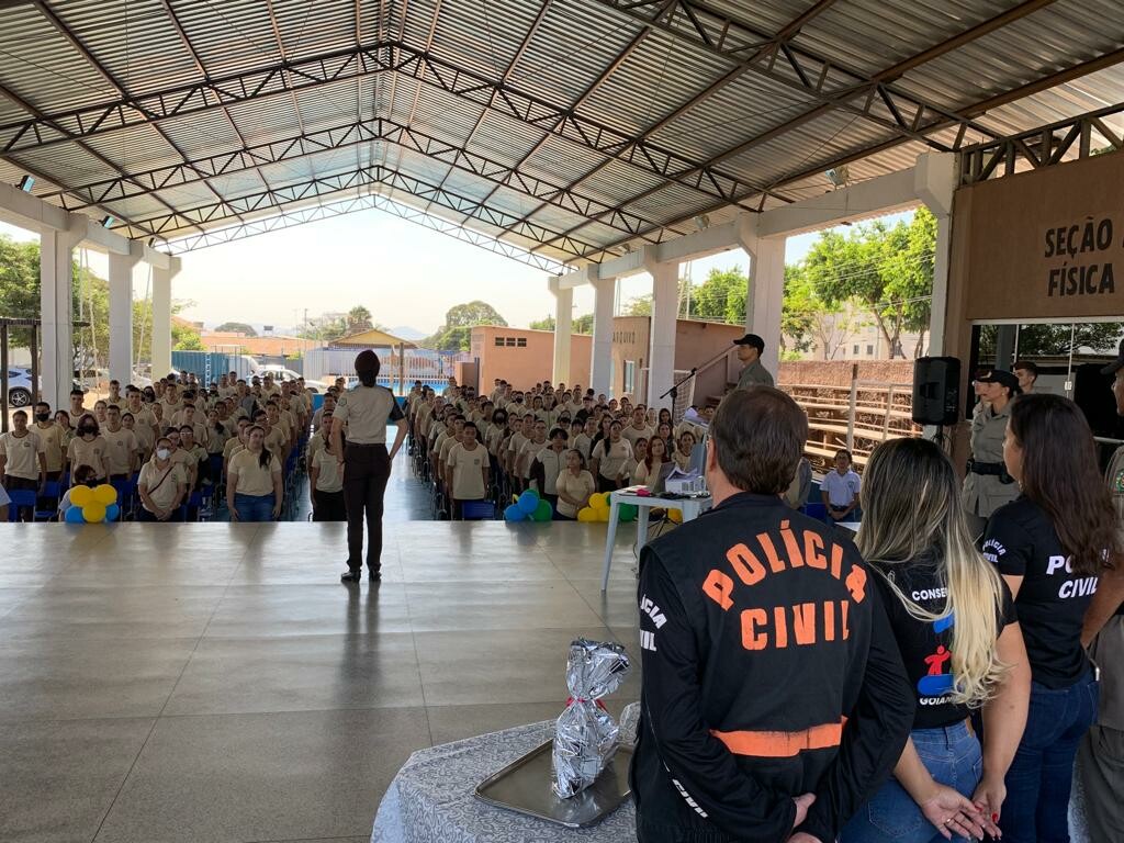 A equipe da Delegacia de Proteção à Criança e ao Adolescente (DPCA) de Goiânia participou nesta sexta-feira (05/8) de uma palestra educativa para os alunos do Colégio Militar do Parque Atheneu. O evento contou com cerca de 500 alunos e tratou dos crimes contra crianças e adolescentes, violência doméstica e familiar contra a mulher e também sobre percepção e repreensão. A palestra auxilia no crescimento profissional dos alunos e na conscientização sobre a proteção à mulher, além de contribuir com o caráter e formação educativa dos menores.