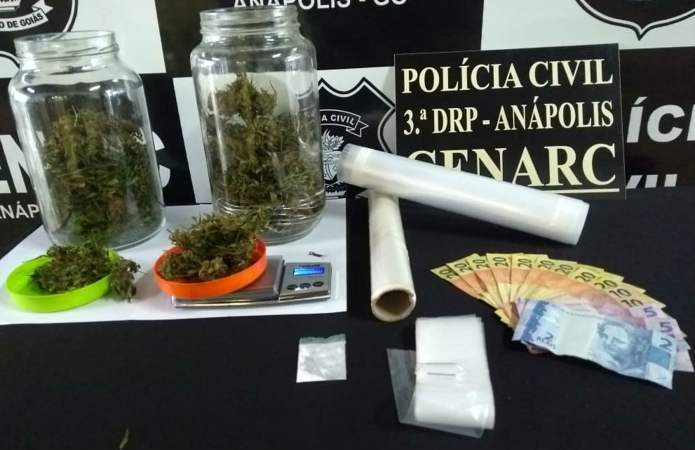 O Grupo de Repressão a Narcóticos (Genarc) de Anápolis prendeu, na última quarta-feira (6), duas pessoas pelo crime de tráfico de drogas. Após diligências, os policiais descobriram que Américo Henrique Araújo de Oliveira, de 23 anos, estava comercializando drogas na cidade. Na casa do suspeito, foram encontrados droga, dinheiro do tráfico e balança de precisão.