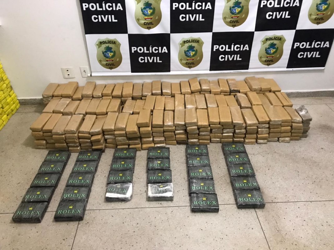 Os policiais civis do Grupo de Repressão a Narcóticos (GENARC) de Aparecida de Goiânia, aprenderam, por volta das 19:00hs da última sexta-feira (18), na cidade de Senador Canedo, 28 Kg de cocaína, 800 Kg de maconha, um revólver calibre 38, marca Taurus, 31 munições calibre 38, um veículo Fiat Uno em um imóvel situado no Setor São Francisco, em Senador Canedo.