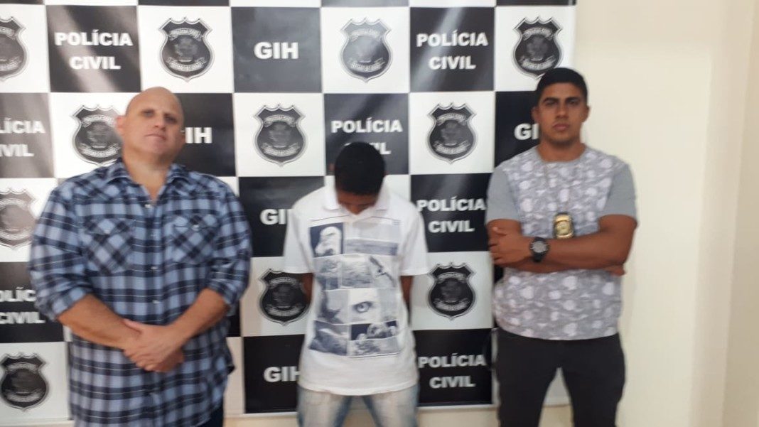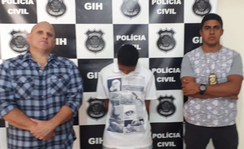 Na tarde desta quinta-feira (02/08), policiais civis do GIH (Grupo de Investigações de Homicídios) de Trindade deram cumprimento ao mandado de prisão preventiva expedido em desfavor de João Victor Lima, investigado pelo crime de latrocínio ocorrido no feriado de 1º de maio deste ano em desfavor de Paulo Henrique Alves. De acordo com informações do delegado Vicente Gravina, o suspeito foi reconhecido por uma testemunha que presenciou todo o fato. “Na ocasião do crime, o João Victor e seu comparsa tentaram subtrair, mediante violência e grave ameaça, o veículo que estava dentro da garagem da residência da vítima. Porém ao perceberem que não conseguiriam roubar o carro, João Victor efetuou disparos de arma de fogo contra a vítima que se escondia dentro de casa, mas acabou atingida e morreu”, contou o delegado.