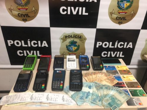 Após investigação, o suposto autor foi preso em flagrante no terminal de transporte público de Goianira, enquanto tentava fugir. Foram apreendidos cerca de 10 máquinas de cartões bancários utilizadas nos golpes, 30 cartões de crédito subtraídos das vítimas, além da quantia em dinheiro de R$ 4 mil. O material foi encontrado numa pousada onde o homem estava hospedado. “Ele sacava no caixa eletrônico o limite diário e passava os cartões das vítimas em máquinas de crédito e débito que ele carregava”, diz a delegada Carla.