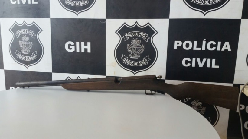 Após receber informações anônimas, a equipe da polícia diligenciou no endereço do investigado e localizou a arma de fogo artesanal, mantida sob a guarda do idoso, no interior do guarda-roupa dele.
