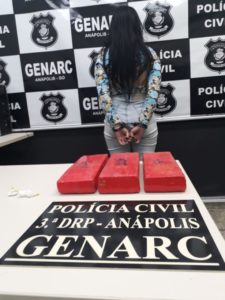 Uma mulher foi presa na tarde desta segunda-feira (11/06) em Anápolis após ser surpreendida com 3 quilos de maconha e pequenas porções de cocaína.