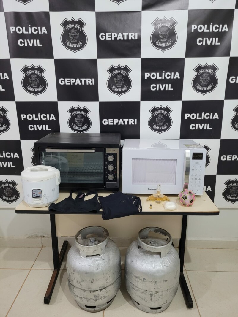 A Polícia Civil de Goiás, por meio do Grupo Especial de Repressão a Crimes Patrimoniais (Gepatri) de Itumbiara, prendeu em flagrante uma mulher de 19 anos pelo crime de receptação. A delegacia já investigava furto ocorrido em 10 de agosto, no Bairro Alto da Boa Vista. Na ocasião, um indivíduo, até então desconhecido, havia subtraído da casa da vítima diversos objetos, entre eles vestimentas, perfumes e eletrodomésticos. Após diligências os investigadores descobriram que o suspeito era vizinho da vítima. Com uma das moradoras da casa foram encontrados uma calça, um top, e perfumes, todos oriundos do crime de furto, motivo pelo qual ela foi detida por receptação. Os policiais ainda recuperaram forno elétrico, um micro-ondas, uma panela elétrica e dois botijões de gás, todos localizados no Bairro Remi Martins. O autor do furto já foi interrogado.