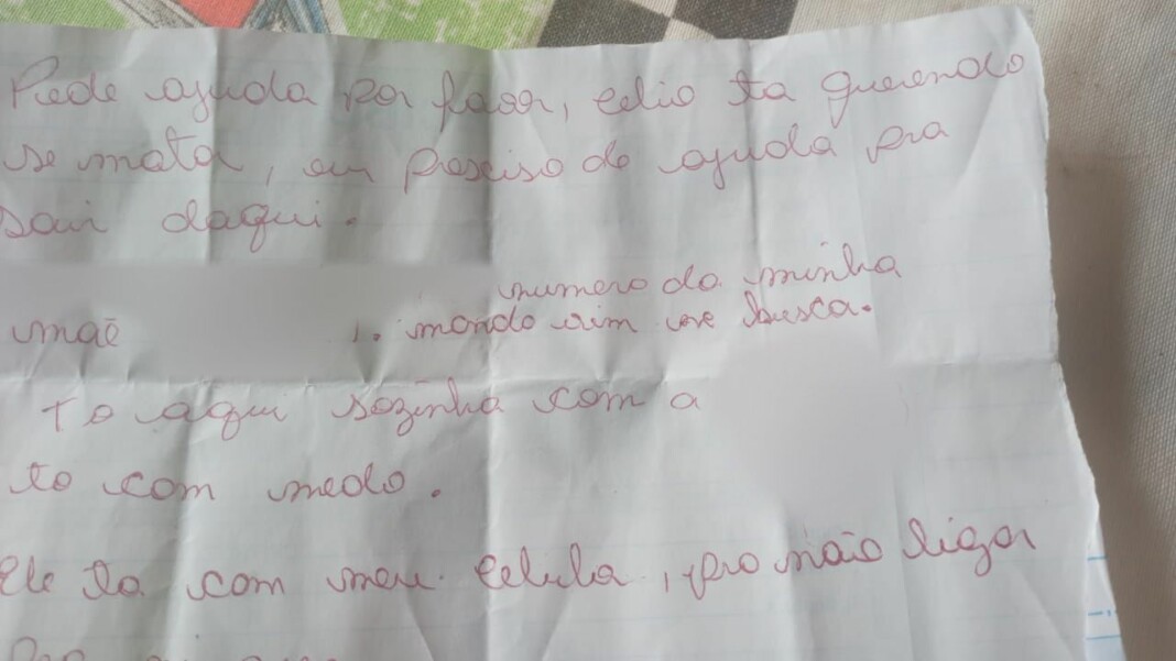 Ontem a vítima (esposa), após descuido do autor, conseguiu escrever um bilhete pedindo socorro e o arremessou pelo muro. No bilhete ela anotou o número de telefone da sua mãe e pedia para que entrassem em contato com os familiares e estes buscassem ajuda junto à polícia.