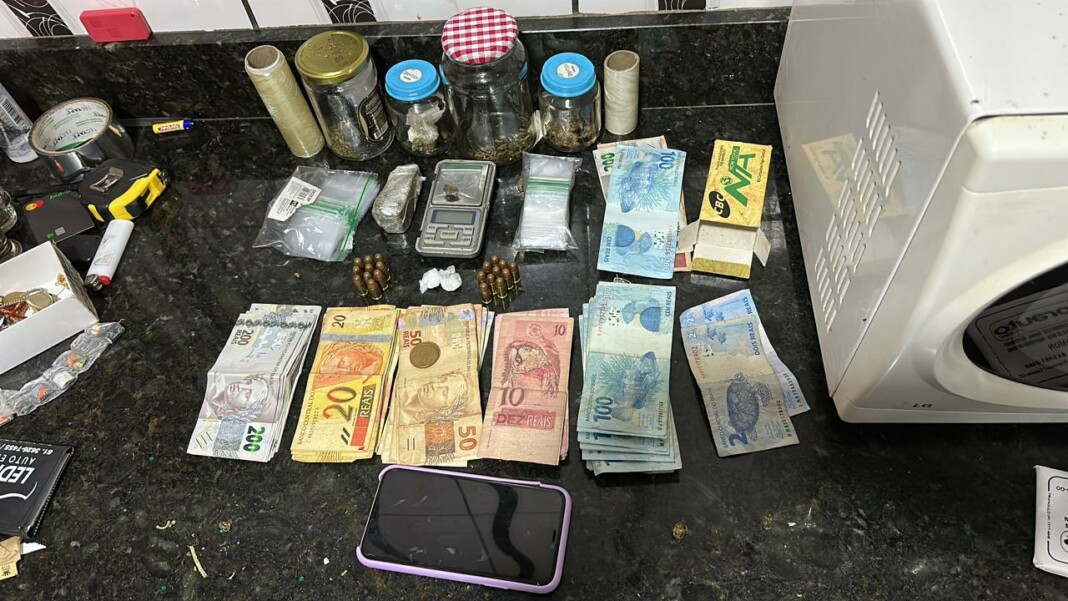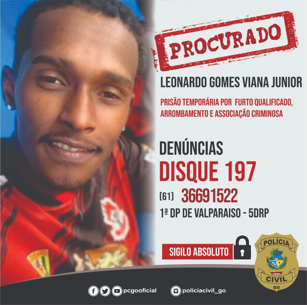 Dois suspeitos foram presos em flagrante na operação por posse irregular de 20 munições e tráfico de drogas. Foram apreendidos R$ 6 mil em espécie. A operação contou com mais de 30 policiais civis da 5ª e da 17ª DRP e de policiais militares. O investigado Leonardo Gomes está foragido e é procurado pela PCGO. A divulgação da imagem dele foi procedida nos termos da Lei nº 13.869/2019 e da Portaria nº 547/2021 – PC, conforme despacho do(a) delegado(a) de polícia responsável pelo inquérito policial, de modo que a publicação de sua imagem possa auxiliar na localização e prisão.