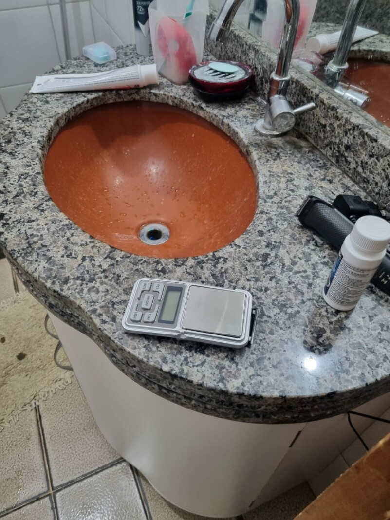 No momento do ingresso no imóvel, o investigado se trancou no banheiro e tentou dispensar cerca de 265 gramas de Skunk (super maconha) no vaso sanitário, bem como quebrou seu aparelho celular e uma balança de precisão. No quarto do investigado, foram encontrados frascos de anabolizantes, cerca de 30 gramas de Haxixe e R$ 720 em espécie. Todo o material foi apreendido, ao passo que o homem foi autuado em flagrante pelo crime de tráfico de drogas, passando à disposição do Poder Judiciário.