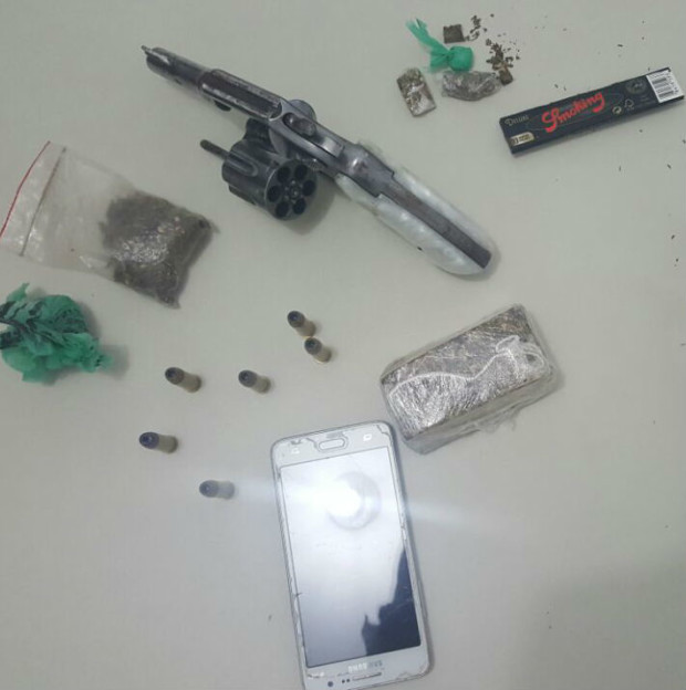 O Grupo de Investigação de Homicídios e de Repressão a Narcóticos (GIH/Genarc) de Senador Canedo cumpriu, na manhã de quarta-feira (26), mandado de busca domiciliar e apreendeu um revólver calibre 38, diversas munições do mesmo calibre e porções de substância suspeita de se tratar de maconha em posse de Átila Ferreira dos Santos. Ele já foi condenado por tráfico de drogas.