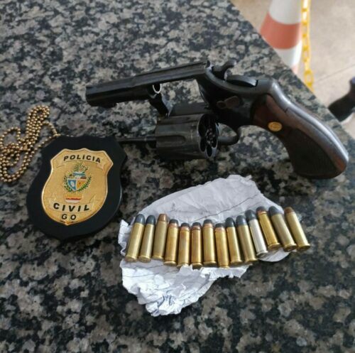 Nesta sexta-feira (16), a equipe da Delegacia de Polícia de São Luís de Montes Belos, após troca de informações com a Polícia Civil do Estado do Ceará, realizou diligências prendeu um foragido da justiça daquele Estado, conhecido integrante de organização criminosa, que estaria se ocultando em uma casa no setor Aeroporto, em São Luís. Durante a ação, os investigadores localizaram e apreenderam uma arma de fogo ilegal do tipo revolver. O investigado recebeu voz de prisão em flagrante pelo crime de posse ilegal de arma de fogo, bem como foi dado cumprimento ao mandado de prisão emitido pelo Poder Judiciário do Ceará pelo delito de tráfico de drogas e posse ilegal de arma de fogo. O conduzido ainda é investigado pela suposta prática de homicídio no Ceará.