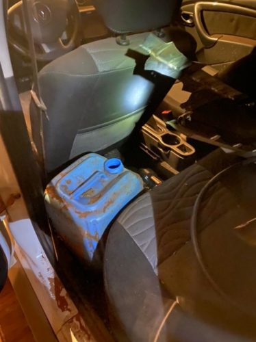 O suspeito foi surpreendido na posse de um veículo Renault Duster, cor branca, produto de roubo ocorrido em Taguatinga (DF), utilizado como instrumento para a prática de dois homicídios recentes na cidade de Vianópolis e um roubo na cidade de Orizona no último dia 15. No interior do veículo, que ostentava uma placa clonada, foram encontrados três galões de gasolina vazios, uma mangueira para pronto abastecimento, para-choques reserva e outras duas placas clonadas e idênticas.