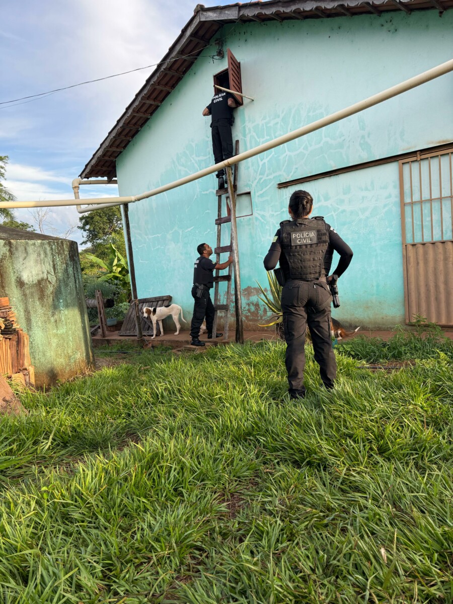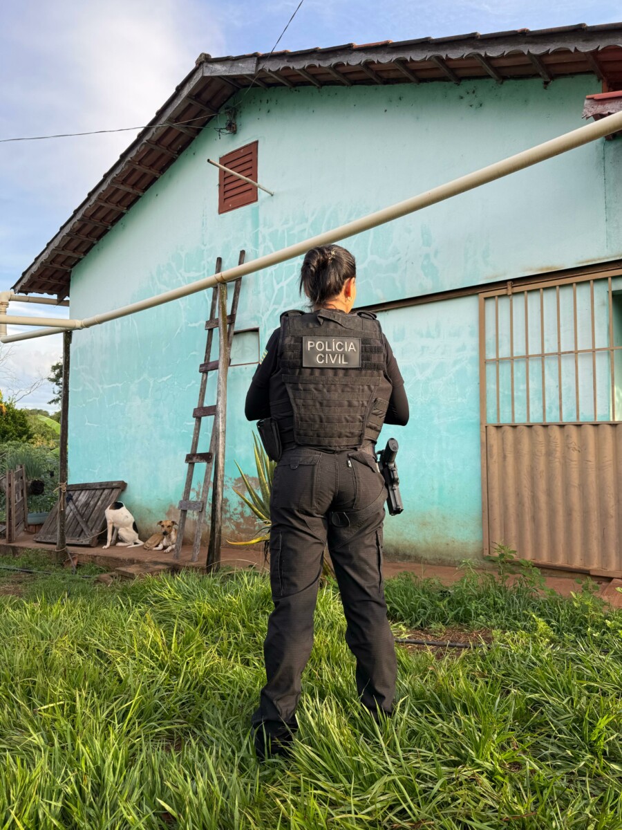A Polícia Civil de Goiás, por meio da Subdelegacia de Montividiu do Norte – 12ª DRP, com apoio da Delegacia de Porangatu e da Delegacia Especializada no Atendimento à Mulher da região, cumpriu, nesta quarta-feira (19), mandado de busca e apreensão em uma propriedade localizada na zona rural de Montividiu do Norte, no Distrito da Mata Azul, no âmbito da investigação de um homicídio qualificado ocorrido no município, com o objetivo de coletar provas para o inquérito policial.