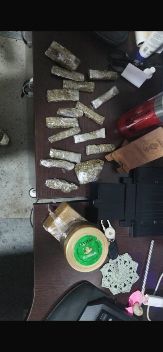 Durante a atuação policial, em situação de flagrante delito e diante de fundadas razões, os agentes localizaram no interior do imóvel quantidade considerável de substância entorpecente, além de balança de precisão e material utilizado para acondicionamento, elementos que caracterizam, em tese, o crime de tráfico de drogas.
