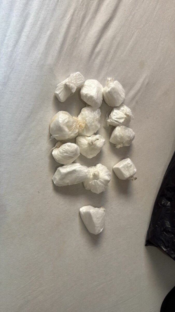 Após diligências, a equipe identificou o modus operandi do investigado, e no dia 02/10, os policiais flagraram o momento no qual o indivíduo entregava um objeto branco – supostamente cocaína – a uma pessoa, que o escondeu em uma residência próxima. Com o apoio do Gepatri, a equipe realizou a abordagem dos suspeitos.