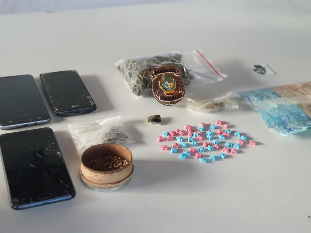A Polícia Civil do Estado de Goiás, por intermédio do Grupo de Repressão a Narcóticos (Genarc) da Cidade de Goiás, após investigações e três dias de monitoramento, predeu em flagrante delito nessa quarta-feira (03) pelo crime de tráfico de drogas. Durante as investigações, identificou-se que o autor adquiria drogas pela internet as quais eram entregues por meio dos Correios. Com ele foram apreendidos 50 comprimidos de ecstasy que haviam acabado de ser entregues a ele via Correios, bem como porções de maconha, haxixe, LSD e sementes de maconha, além de celulares e dinheiro em espécie. O preso foi recolhido à unidade prisional e à disposição da Justiça.