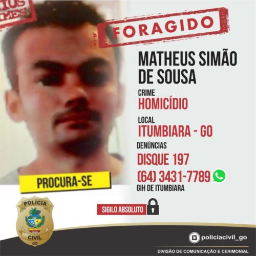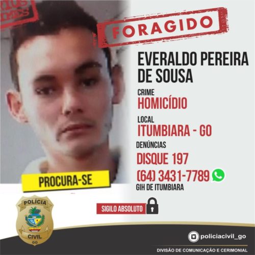 A Polícia Civil do Estado de Goiás, por meio do Grupo de Investigação de Homicídios (GIH) de Itumbiara, está à procura dos irmãos Everaldo Pereira de Soua e Matheus Simão de Sousa, suspeitos de executarem o segurança Danilo de Araújo Alves, bem como causar ferimentos de natureza grave em Allan Dellon dos Anjos. Os fatos ocorreram em julho de 2016, em uma festa na Associação dos Servidores Municipais, localizada no Setor Jardim Liberdade, Itumbiara.
