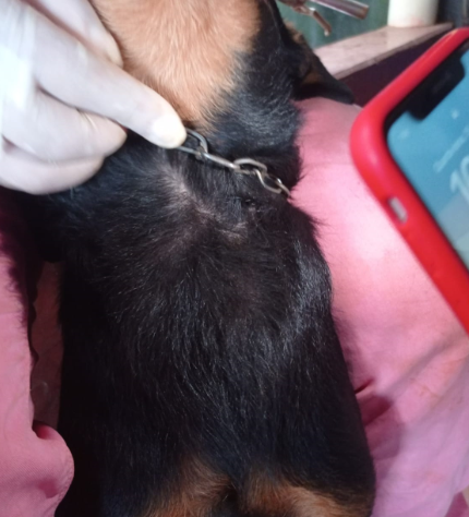 A Polícia Civil do Estado de Goiás, por meio da 2ª Delegacia Distrital de Polícia (DDP) e da equipe da Central de Flagrantes de Itumbiara, em auxílio à AMMAI, efetuou ontem (16/2) o resgate de um cachorro vítima de maus-tratos. Após receber denúncias de vizinhos, as equipes da Polícia Civil e do órgão municipal compareceram na residência onde o animal foi encontrado em situação precária, acorrentado a uma parede sem ter sequer espaço para se mexer.