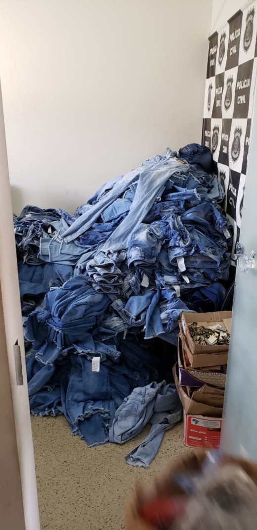 Polícia Civil apreende toneladas de roupas e aviamentos falsificados em Jaraguá