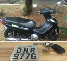 Tiago ocultava em sua residência uma motocicleta Honda Biz, placa ONR-9776, furtada no dia 30 de junho. O veículo, que possui cor original vermelha, já havia sido pintado de preto quando de sua localização na casa do receptador, situada no Residencial Primavera, nas proximidades do aeroporto.