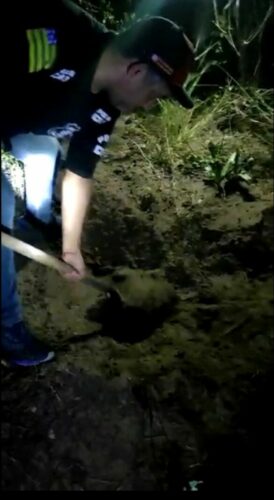 No local, a policiais civis e militares conseguiram localizar e desenterrar o corpo que provavelmente é da vítima José Alves dos Santos. O principal suspeito do crime foi preso pela Polícia Civil.
