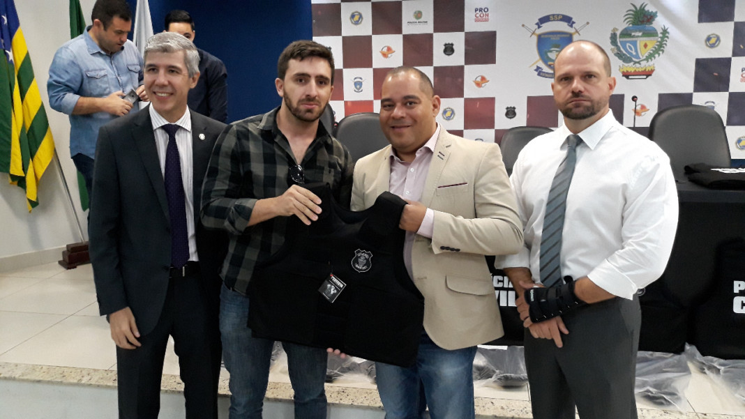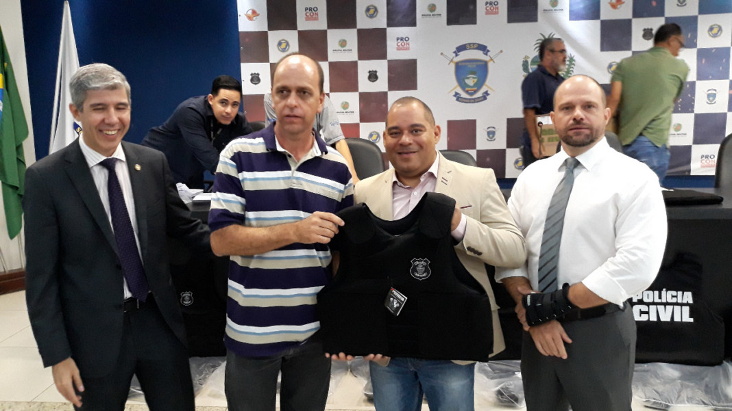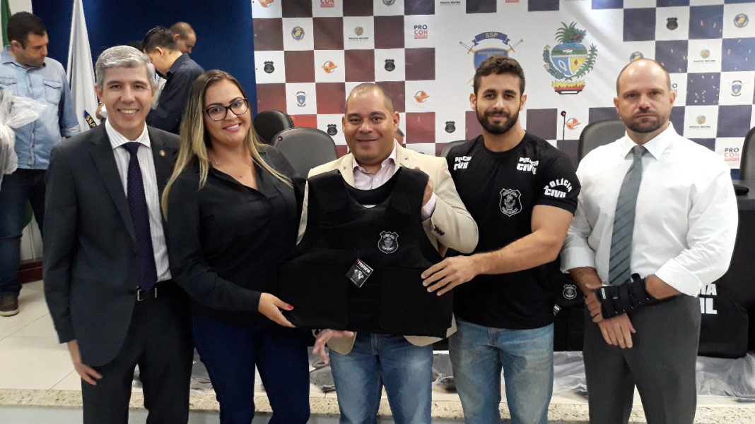 A Diretoria da Polícia Civil de Goiás entregou, na manhã desta quinta-feira (27), a delegacias de Goiânia e de municípios do interior, coletes balísticos e viaturas adquiridos via convênio com a Secretaria Nacional de Segurança Pública (Senasp). Ao todo, a instituição adquiriu 240 coletes balísticos, dos quais 170 foram entregues aos policiais presentes na solenidade. As demais unidades podem ser retiradas pelas delegacias contempladas na Seção de Armamento e Tiro da Polícia Civil. As duas viaturas adquiridas foram entregues à Delegacia Especializada no Atendimento ao Idoso, coordenada pela delegada Ana Lívia Batista.