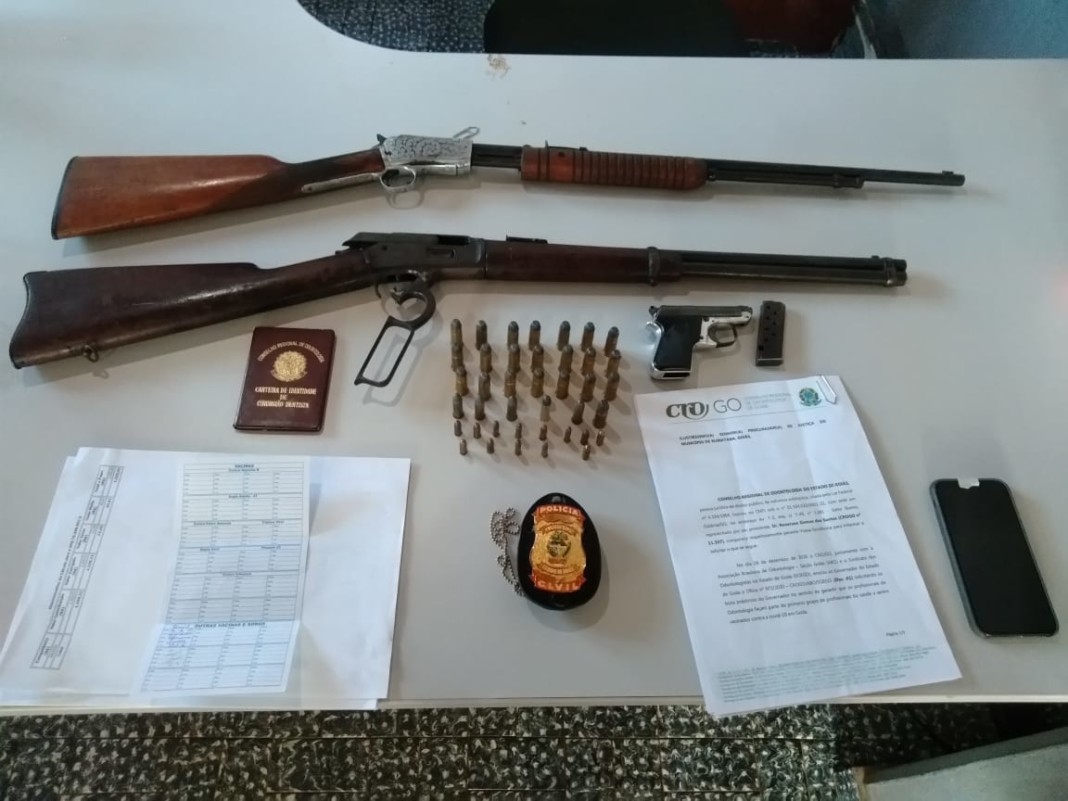 A operação resultou na apreensão de duas espingardas, uma pistola cal. 635, munições de diversos calibres, o que ensejou a lavratura de um auto de prisão em flagrante delito por posse irregular de arma de fogo contra duas pessoas. Elas pagaram fiança e foram liberadas. Além disso, foram apreendidos diversos documentos e objetos, que serão agora analisados a fim de se descobrir eventual envolvimento de outras pessoas. Os investigados são suspeitos de praticarem os crimes de falsidade ideológica e infração de medida sanitária preventiva, delitos cujas penas somadas podem ultrapassar quatro anos de prisão, além de multa.