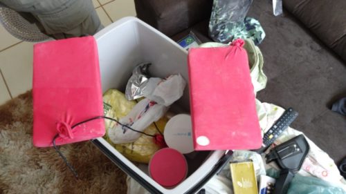 Na residência, foram encontrados vários tabletes de cocaína, diversos pinos vazios para uso de cocaína, balança de precisão, bem como um revólver calibre .38 e inúmeras munições. Apreenderam-se também 5 carregadores de pistola, além de um alongador para Glock. Ademais, apurou-se mais de R$ 30 mil em dinheiro dispersos no apartamento.