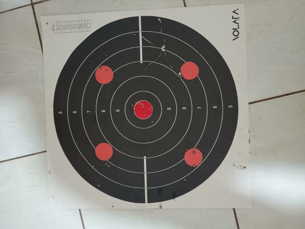 Durante a busca veicular, foi localizada uma arma longa, tipo Carabina, calibre .22, 11 munições intactas e um alvo de papel perfurado. O abordado afirmou que estaria na mata praticando tiro ao alvo.