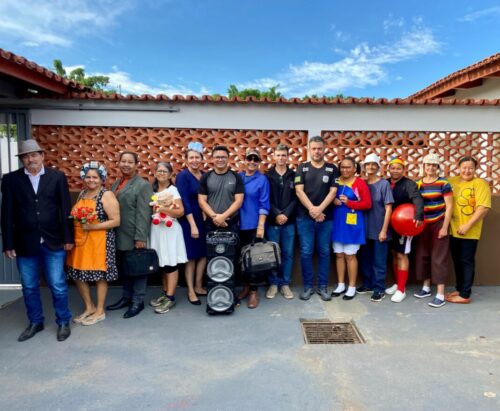 Na manhã de hoje (23/5), a equipe da Delegacia de Polícia de Jaupaci participou de um teatro em referência ao Dia Nacional de Combate ao Abuso e Exploração Sexual de Crianças e Adolescentes promovido pelo Fundo Municipal dos Direitos da Criança e do Adolescente de Jaupaci (FMDCA). O teatro encenou uma peça do seriado mexicano “Chaves”, em que um pedófilo, utilizando o nome falso de “Rodolpho”, chega até a vila oferecendo dinheiro, balinhas, chocolates e doces para as crianças entrarem no carro dele. “Rodolpho”, na verdade, é o pedófilo Carlos, que inclusive tinha mandado de prisão em aberto pelo crime de estupro de vulnerável. A Polícia Civil é acionada e prende “Rodolpho”, impedindo que ele cometa novos abusos.