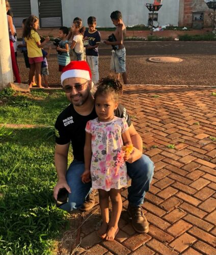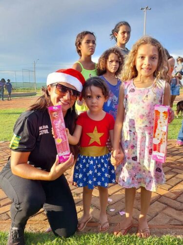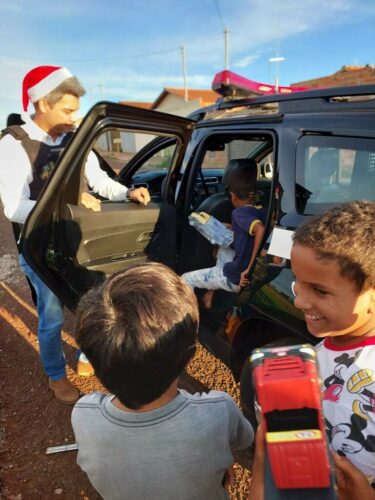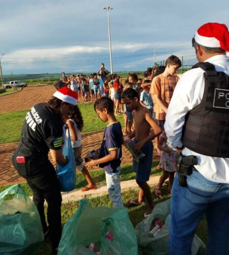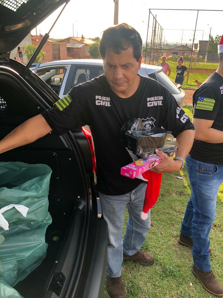 Policiais civis levam brinquedos e guloseimas de natal a crianças de Jataí