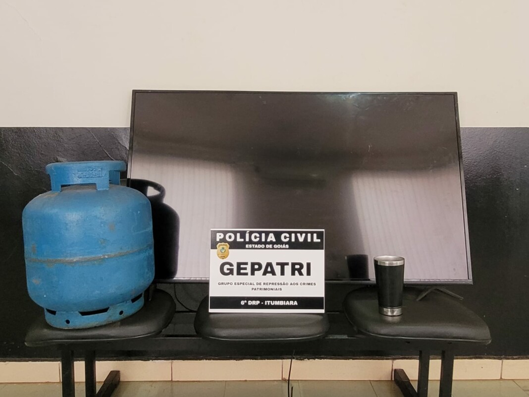 Na manhã de hoje (28), a Polícia Civil de Goiás, por meio do Grupo de Repressão a Crimes Patrimoniais (Gepatri) de Itumbiara, prendeu em flagrante um indivíduo de 30 anos de idade pelo crime de receptação dolosa. Os policiais civis do grupo investigavam um crime de furto qualificado ocorrido na madrugada do sábado. Segundo a vítima, dois indivíduos invadiram sua residência com arrombamento do cadeado e subtraíram da casa uma televisão de 55 polegadas, um botijão de gás, um copo da marca Stanley e mantimentos. O comprador da TV confessou ter adquirido o aparelho por R$ 800, valor muito abaixo do mercado, além de não ter nota fiscal. O aparelho foi reconhecido pela vítima como de sua propriedade. Os demais objetos também foram recuperados e o autor do furto, identificado.