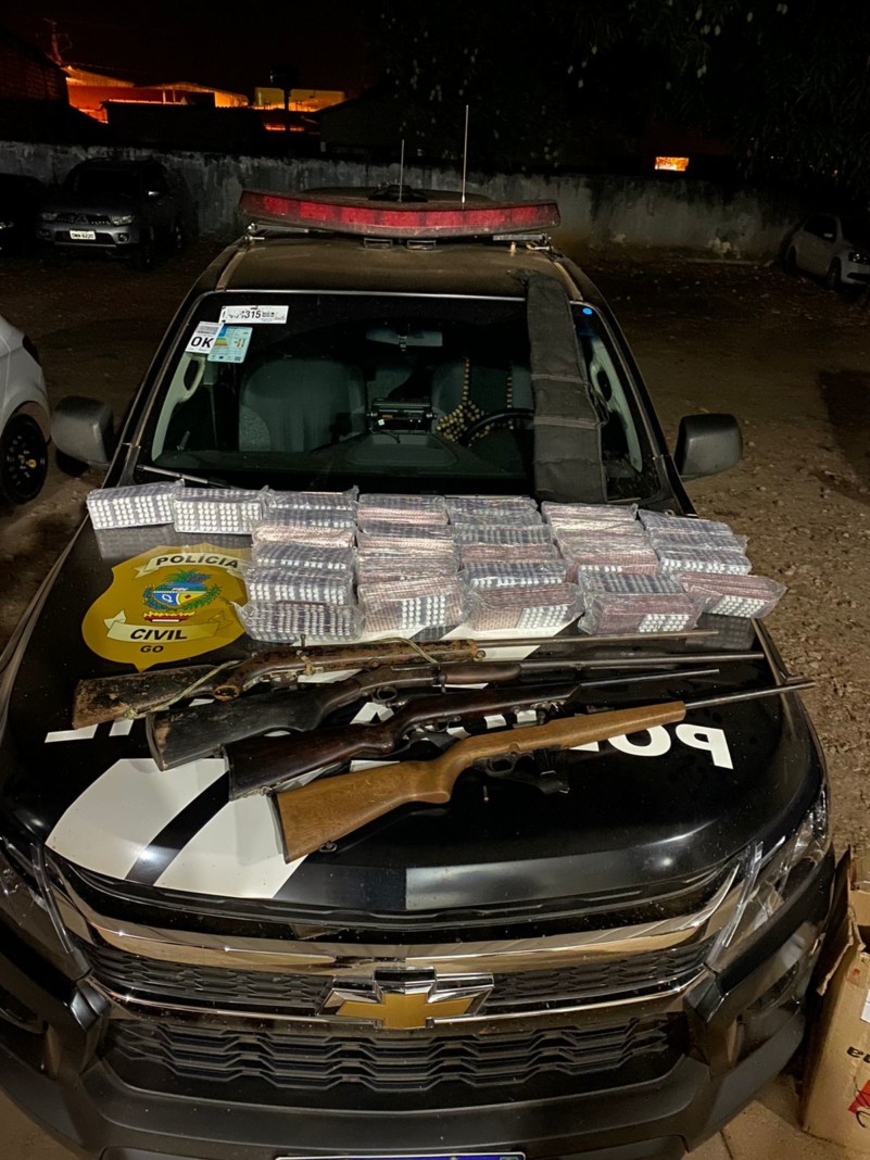 Nessa quinta-feira (30), a Polícia Civil do Estado de Goiás, através da Delegacia de Polícia (DP) de Porangatu, após longas investigações, conseguiu efetuar a prisão de três suspeitos, ocasião em que foram localizadas quatro armas de calibres diversos, além da quantia de 22.500 comprimidos de entorpecentes. Os presos são suspeitos de praticarem um roubo, no dia 29 de setembro em uma propriedade rural no município, onde os três indivíduos armados fizeram os proprietários de reféns e subtraíram vários pertences, agindo com extrema violência, através de agressões e ameaças a um casal de idoso. Findo o procedimento, os envolvidos foram conduzidos até a Unidade Prisional Local, onde permanecerão à disposição do Poder Judiciário.