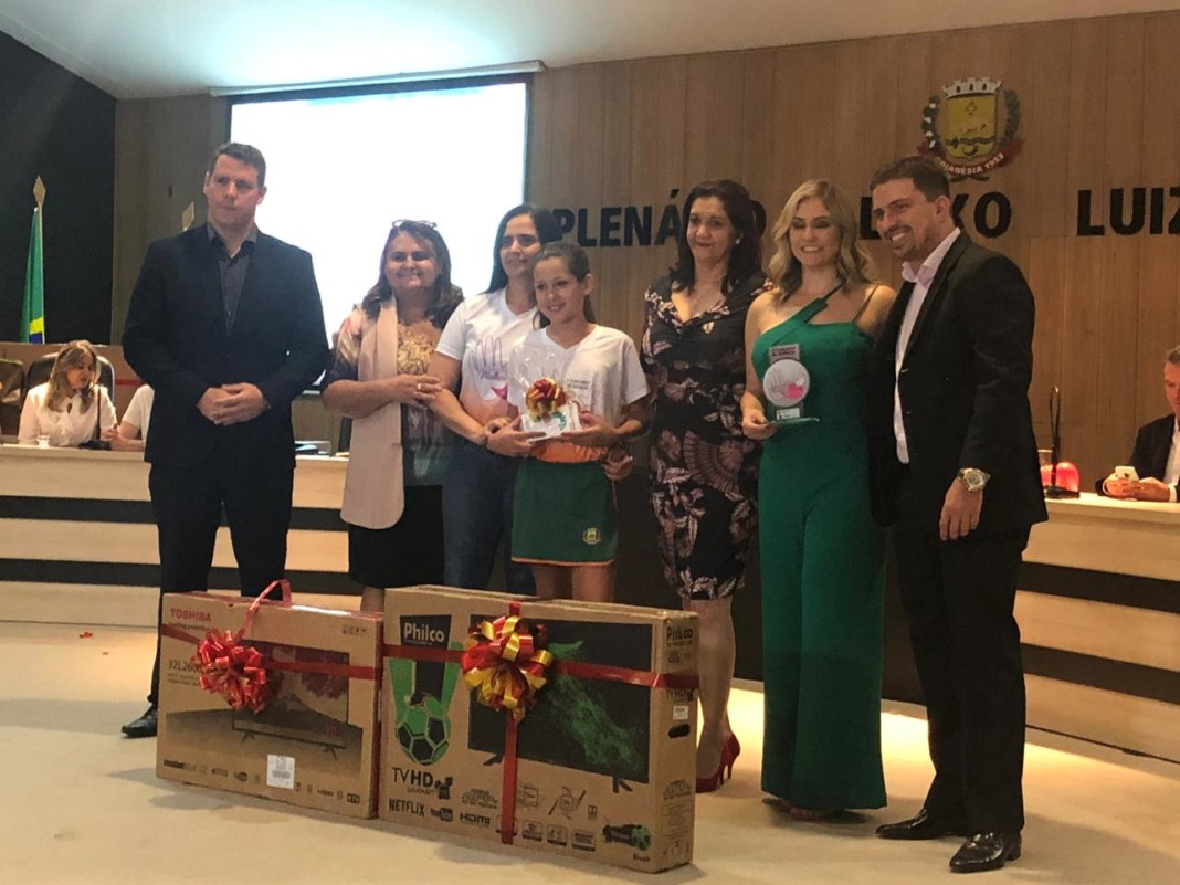 Entre as premiações estão um smartphone Samsung J7, um smartphone Samsung J5 e um smartphone Samsung J3, além de tablets. O professor-orientador e a Escola dos primeiros colocados de cada modalidade receberam uma TV de 32 polegadas. Na ocasião, a Deam de Goianésia lançou o projeto Ação do Coração, cujo objetivo é promover uma cultura de humanização nas relações interpessoas. No ato, a especializada doou um aparelho televisor para o Lar São Vicente de Paula.
