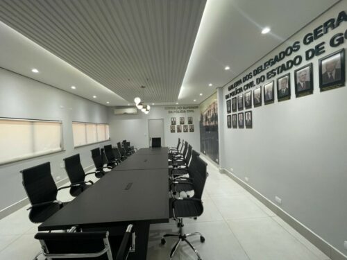 A sala do Conselho Superior da Polícia Civil de Goiás foi reaberta, na manhã desta quinta-feira (21/7), após um período de cerca de 5 meses de reforma. O Conselho Superior da PCGO reúne sete delegados, membros da Administração da instituição, aos quais compete deliberar sobre várias matérias e tomar decisões importantes para a Polícia.