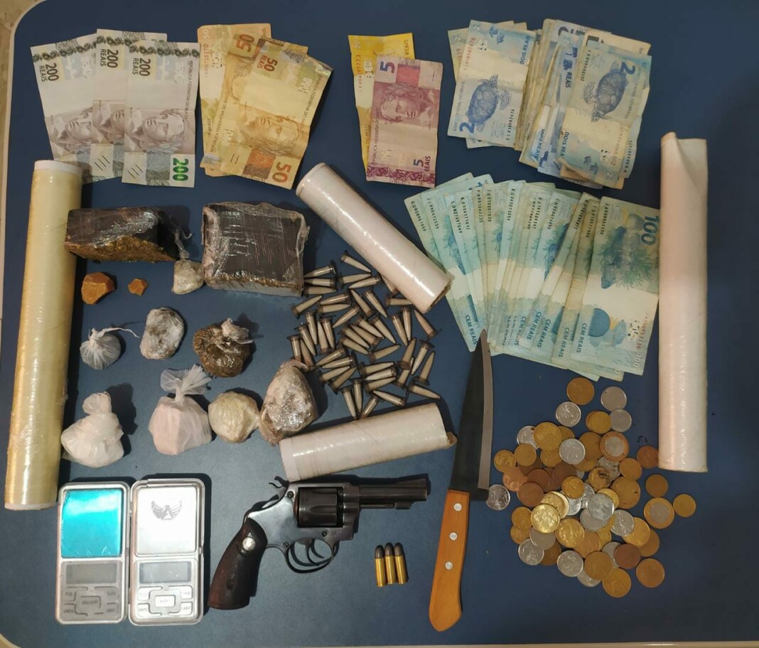 Após minuciosa busca, foi localizada uma grande quantidade em dinheiro, porções de cocaína, maconha e crack, balança de precisão e embalagens vazias para acondicionamento das drogas, entre outros. O homem que tentou fugir foi pego e conduzido à Delegacia, onde foi autuado em flagrante por tráfico e, posteriormente, recolhido na Unidade Prisional de Ceres, ficando à disposição do Judiciário.