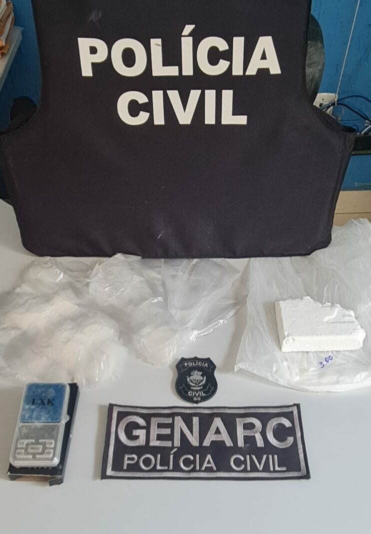 A Polícia Civil de Goiás, por meio do Grupo de Repressão a Narcóticos (GENARC) de Goianésia, com apoio do GEPATRI de Goianésia e da Polícia Militar do Estado de Goiás, prendeu em flagrante, no último dia 19, um autor do crime de tráfico de drogas. Com ele, foram apreendidas cerca de 300g de cocaína com valor estimado de R$ 9.600,00.