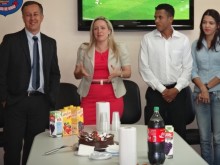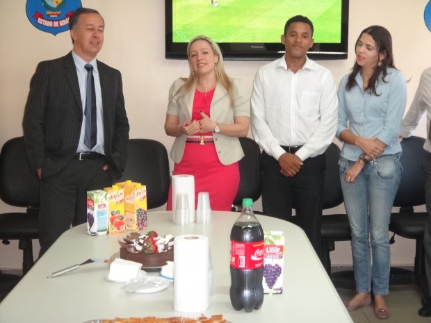 Já virou tradição. Uma vez por mês os servidores do Gabinete da Delegada Geral da Polícia Civil reúnem-se para comemorar a data alusiva ao aniversário de cada um. Para comemorar a data dos que aniversariaram no mês de julho, o encontro aconteceu na última quinta-feira, 26, no final do expediante para comemorar o aniversário da Escrivã de Polícia, Camila Nunes de Almeida (aniversário no dia 10), do Assessor José Pascoal da Silva Júniorv(aniversário no dia 28) e do Delegado Geral Adjunto da Polícia Civil, João Carlos Gorski (aniversário no dia 26). A Delegada Geral Adriana Accorsi parabenizou cada um deles, ressaltando o quanto é bom fazer parte da equipe de trabalho que a assessora diretamente, enaltecendo as qualidades de cada colega aniversariante.
